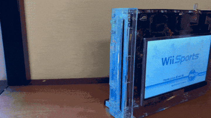 This is a modification to a Nintendo GameCube that allows it to run a custom firmware to run custom code.
